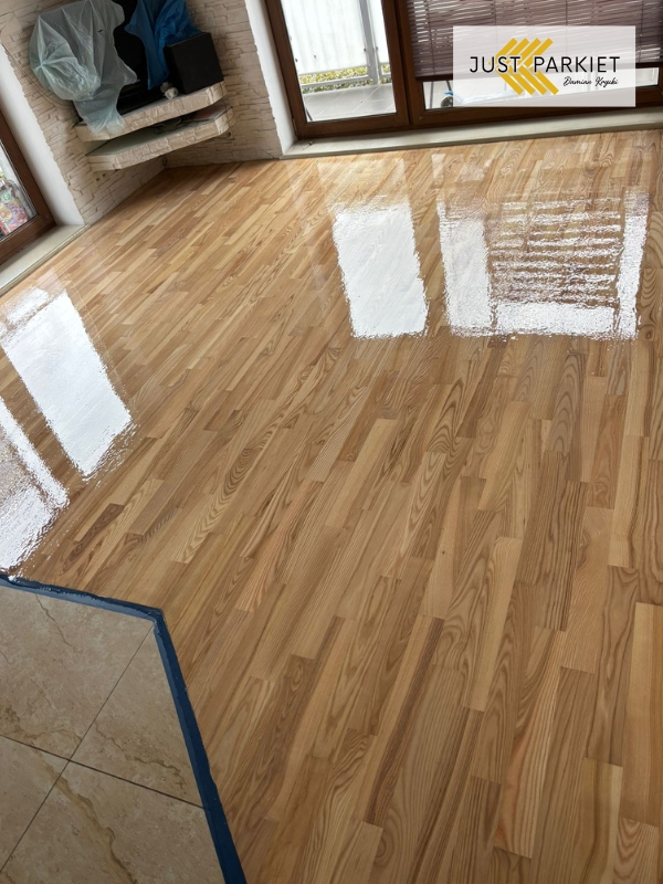Cyklinowanie i lakierowanie warstwowej deski jesion – Lakier Deva